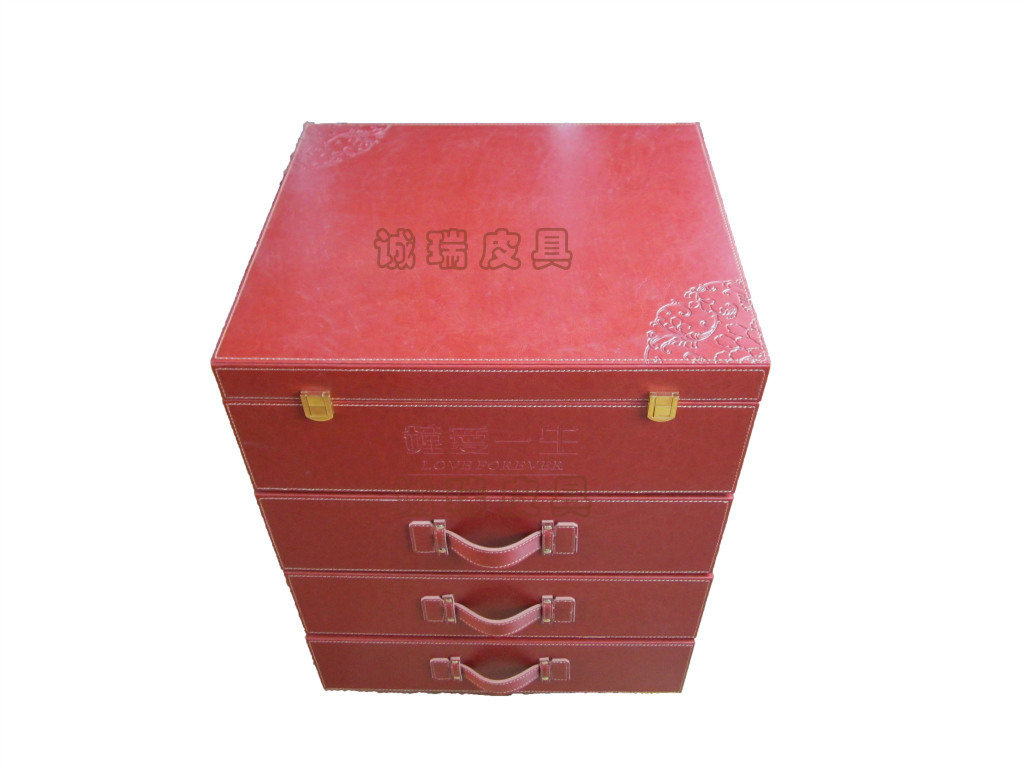 诚瑞皮具厂可按客户的要求为客户量身订制特殊要求的专用木器包装和礼品皮具,可以将公司的LOGO或相关文字压在产品上,也可以订做不同要求的金属标。公司也可遵循客户的构思要求,由专业设计人员设计打样,直至客户满意为止。